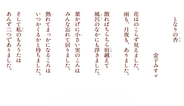 金子みすゞの詩、写真は、金子みすゞ著作保存会の了承を得て掲載しています。