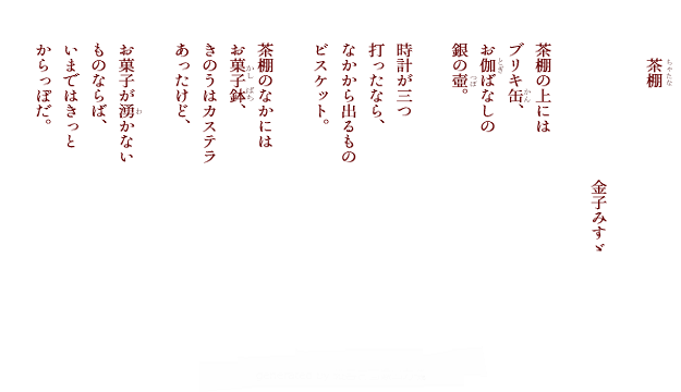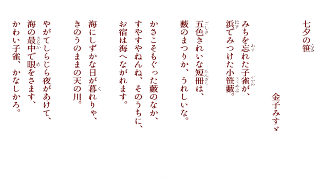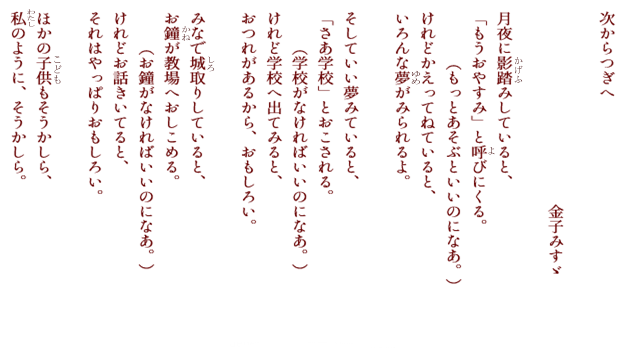 転載される場合は、必ず「金子みすゞ著作保存会」の許可を得てください。
